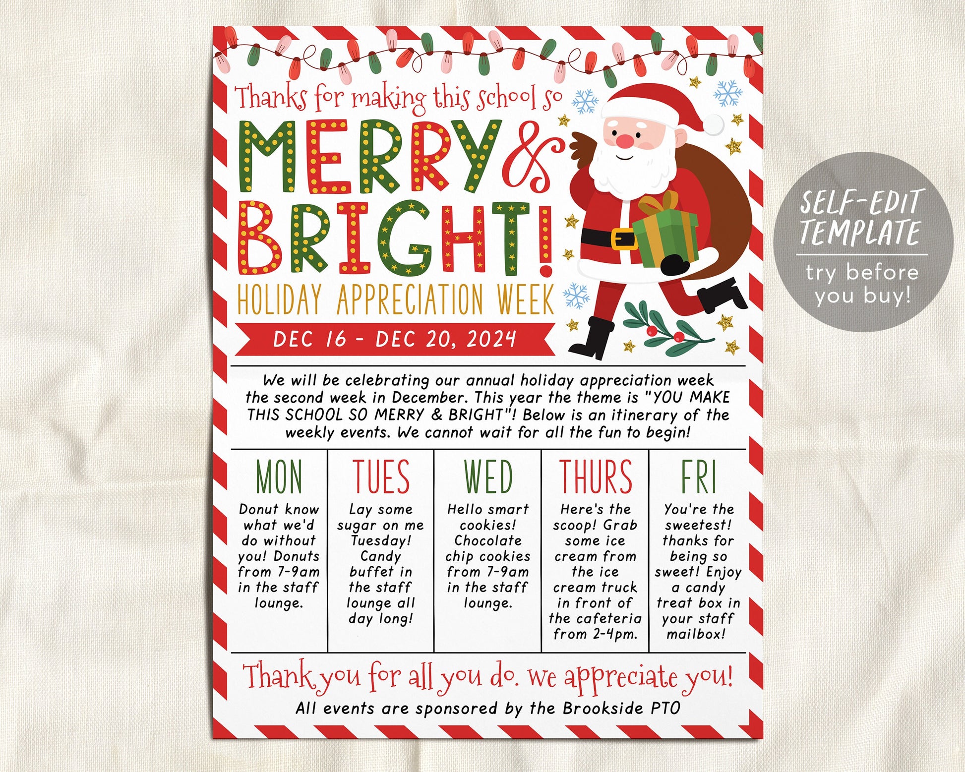 Source : www.torontoteachermom.comHoliday Theme Teacher Staff Appreciation Week Itinerary Flyer